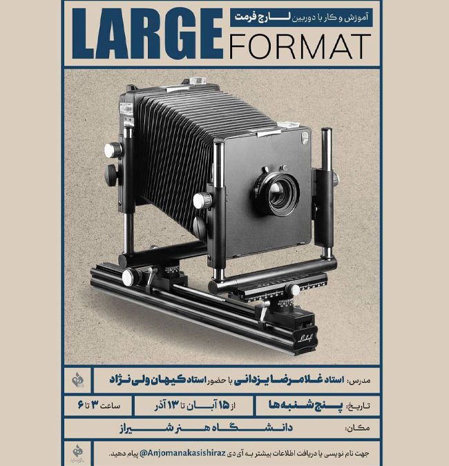 ۱. اولین کارگاه آموزش و کار با دوربین لارج فرمت مدل «لینهوف کاردان» در شیراز.