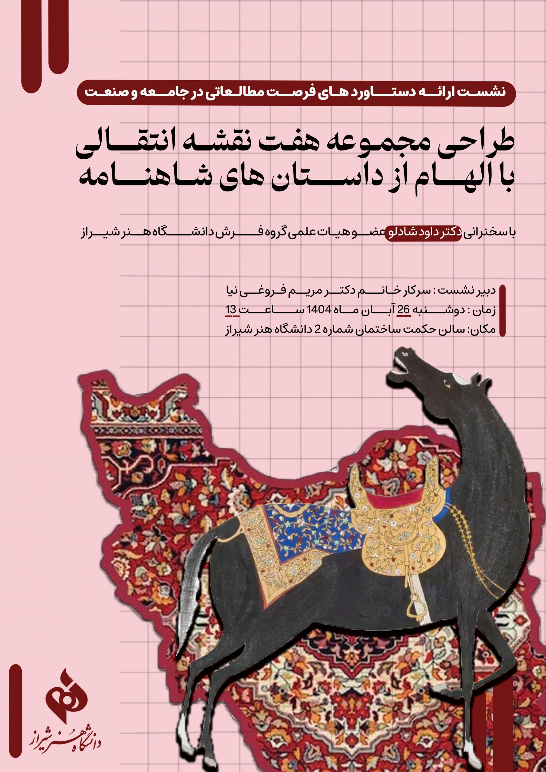 • سخنران: دکتر داود شادلو عضو هیأت علمی گروه فرش دانشگاه هنر شیراز