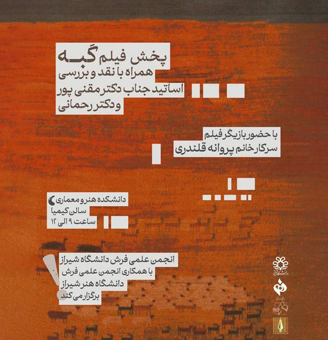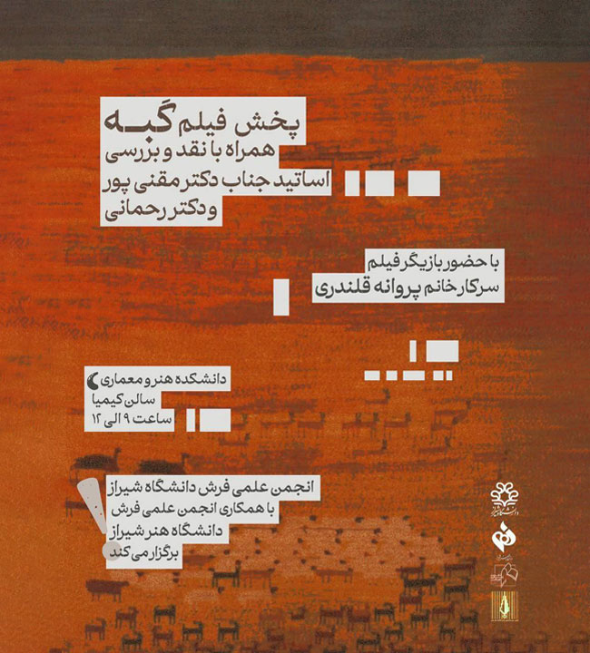 انجمن علمی فرش دانشگاه شیراز با همکاری انجمن علمی فرش دانشگاه هنر شیراز برگزار میکند: