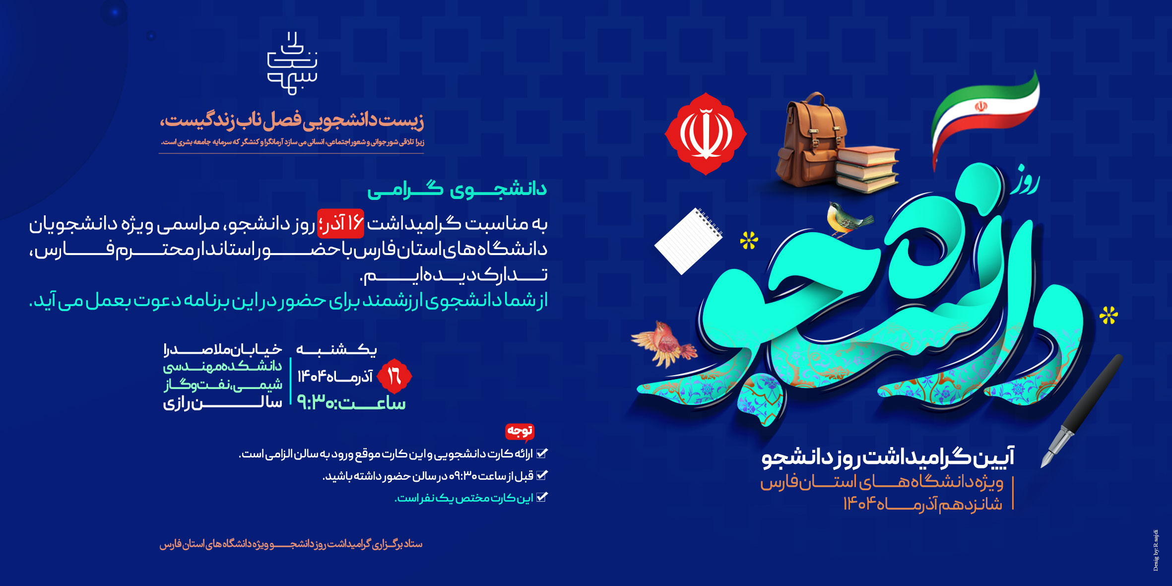 در این مراسم که با حضور استاندار فارس، روسای دانشگاهها و مراکز آموزش عالی، اساتید، دانشجویان و مدیران برگزار شد، استاندار فارس و رئیس دانشگاه شیراز ضمن تبریک روز دانشجو و گرامیداشت یاد و خاطره شهدای دانشجو، بر نقش مؤثر دانشجویان در پیشرفت علمی کشور و همچنین لزوم توجه و رسیدگی به مشکلات و دغدغههای علمی، اجتماعی و رفاهی آنان تأکید کردند.