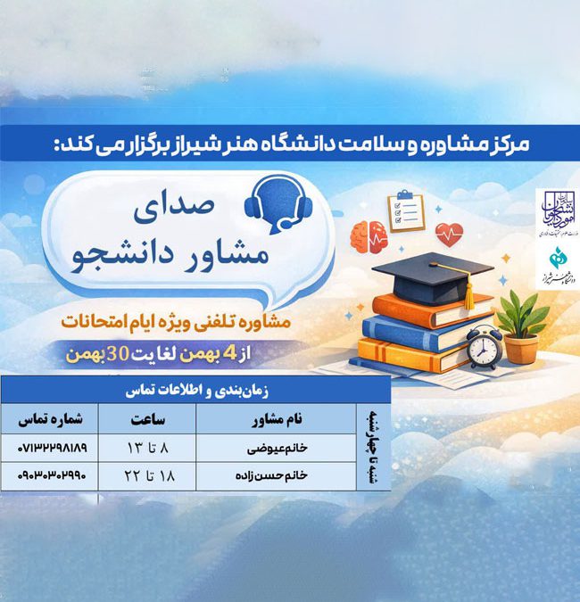 مشاوران مرکز مشاوره و سلامت دانشگاه، در این مسیر همراه و حامی شما هستند تا بتوانید با آرامش بیشتر و توان مدیریت بالاتر، این مرحله را پشت سر بگذارید.